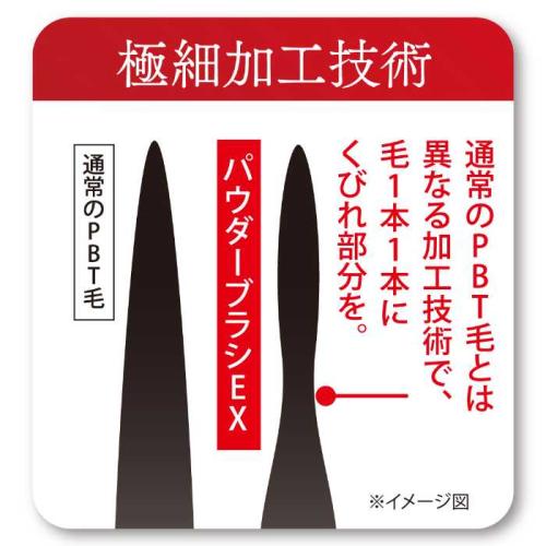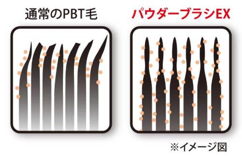 毛にはPBT(ポリブチレンテレフタレート)の極細人工毛を採用。毛1本1本に「くびれ」を施し、パウダーをしっかり含みながらふんわりと肌にのせます。