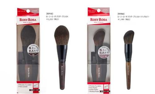 「パウダーブラシEX<アングルド>」は、既存シリーズの心地よい肌あたりを受け継ぎながら、穂先に角度をつけた<アングルド>形状を採用。
