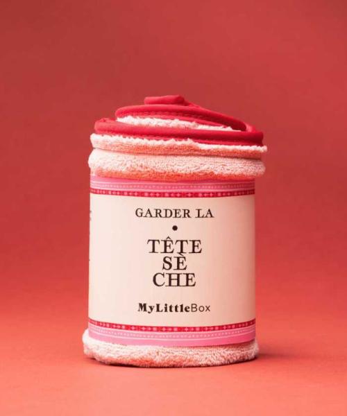 My Little Boxオリジナルのヘアタオルは、濡れた髪を包み込むターバン型。吸水性が高く、ドライヤーの時間を短縮できるのが魅力です。