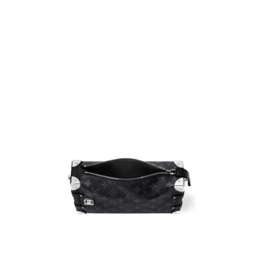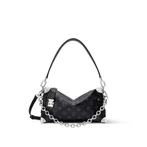 モノグラム・エクリプス キャンバスにシルバーカラーの金具を組み合わせ、モダンでリラックス感のある横長フォルムに仕上げられています。W 28×H 15×D 7 cmと実用性も抜群。
