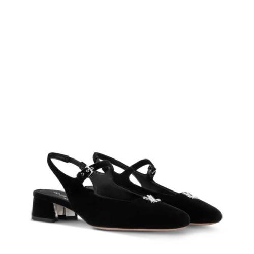 「スウィング メリージェーン パンプス」(178,200円/ヒール3.5cm)はベルベット素材にV字カット、2WAYオフショルダー感覚で履ける上品な一足。