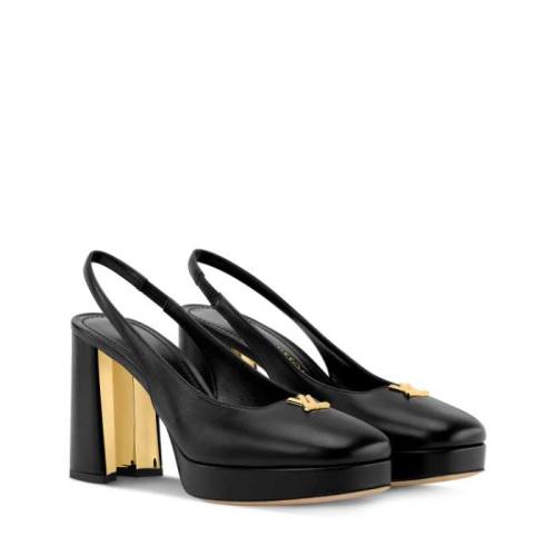「スウィング パンプス」(188,100円/ヒール7.5cm)はゴートスキン製で、Vカットのヒールとスクエアバックルでシャープさを引き出します。