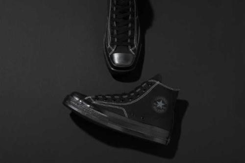 「ALL STAR SQUARETOE HI(直営店限定)」はブラック/ブラックで統一されたミニマルな一足。レザーシューズのような佇まいとスニーカーの快適さを融合させ、ホワイトステッチがポイントに。