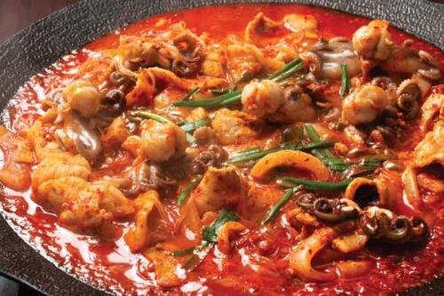 さらに『イイダコと豚肉の旨辛炒め』(473円)は、辛さとコクがあとを引く、韓国好き必食の逸品です♪