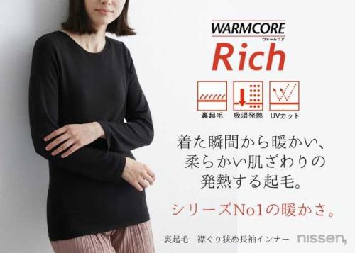 「ウォームコア」シリーズには、肌にやさしい綿100%の「コットン」や、保温性を高めた裏起毛の「リッチ」タイプも展開。