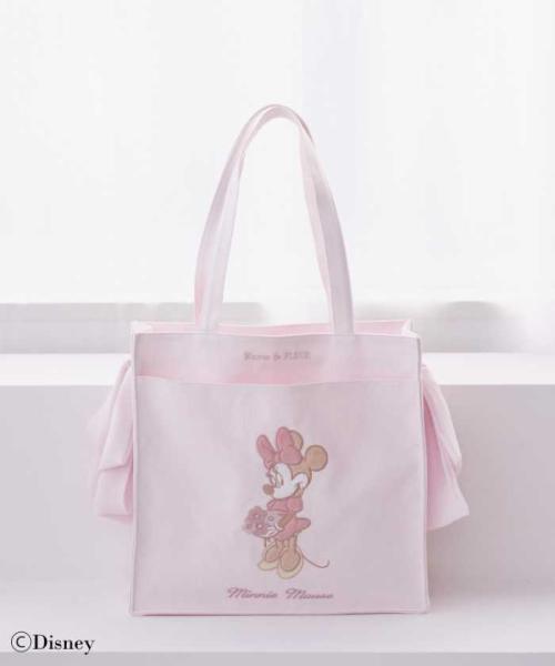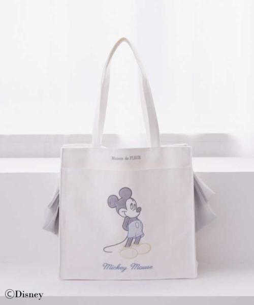 今回登場するコレクションの注目は、「ミッキー」と「ミニー」をイメージしたトートバッグ。微起毛のパッチワーク刺繍があしらわれ、両サイドにはMaison de FLEURらしいシフォンリボンが♡