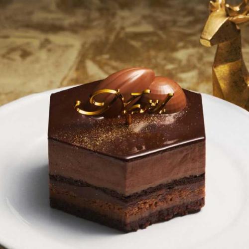 毎年人気の「ショコラ・アメール」(税込5,724円)は、9層構造で生地やムース、ガナッシュが絶妙なハーモニーを奏でる贅沢なチョコレートケーキ。