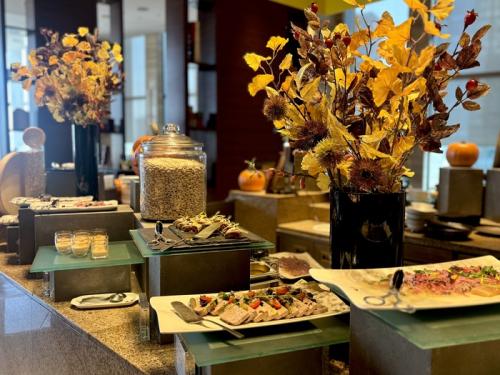 JR大阪駅直結で、アクセス抜群の立地、大阪梅田の複合商業施設グランフロント大阪のエントランスを抜け現れる「インターコンチネンタルホテル大阪」専用エレベーターに乗り、20階のメインロビーへ。「NOKA ROAST &GRILL(ノカ ロースト &グリル)」をご紹介します。レストランへ足を踏み入れると、開放感あふれる広々とした空間が目の前に広がり、窓の向こうには大阪市内を一望するパノラマが広がります。