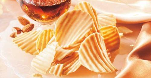 パリッとしたポテトチップの片面に、メープルシュガーとアーモンドプラリネペースト入りのチョコレートをコーティング。甘じょっぱいバランスが絶妙で、後味にほんのりナッツが香ります。