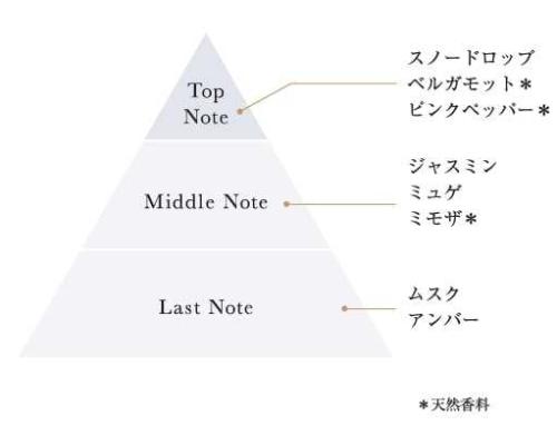 「ホワイトスノードロップ」は冬の静けさを感じさせるグリーンパウダリーフローラルで、透明感とぬくもりを両立。