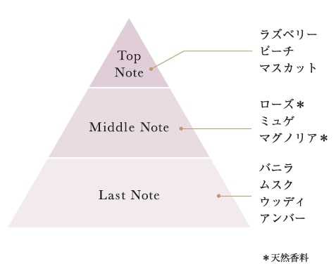 「ラズベリーローズ&バニラ」は甘酸っぱいベリーとローズ、やわらかなバニラが重なり、幸福感あふれるフルーティフローラル。