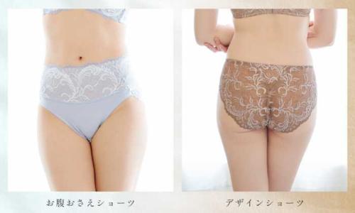 ショーツもレースをたっぷり使用し、美しいラインをつくる「デザインショーツ」と、安心感のある「お腹おさえショーツ」が展開されています。