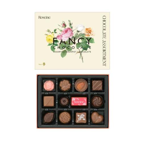 まず「ロゼーヌファンシーチョコレート」は、バレンタイン限定パッケージに包まれた15種の小粒チョコを詰め合わせた人気商品。