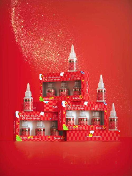 ハリウッド発のオーラルケアブランドNobaton.から、人気アイテム「1% AHA アンプルトゥースペースト」がホリデー仕様の数量限定パッケージで登場します。温かみのあるチェック柄やスターを散りばめた華やかなデザインは、手に取った瞬間にときめきをくれる特別な仕上がり。3本入りのアンプルがウィンドウ越しに見える構造は、ギフトにも飾るアイテムにもぴったりです。日常のケアに季節の彩りを添えてくれる、冬だけの限定アイテムをチェックしてみてください♪