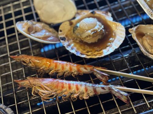 さっきまで生きていた、車海老蔵やホタテがじわじわと焼けてゆく香ばしい香りも、海鮮BBQの醍醐味!お写真動画に残したくなる映える思い出です。