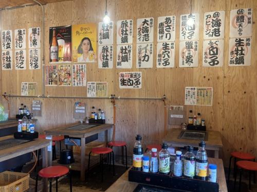 賑わった牡蠣小屋を彷彿とさせる店内の雰囲気と、セルフで楽しむ海鮮BBQ!味付けも自分好みに、醤油やポン酢などでアレンジしながらお楽しみいただけます。