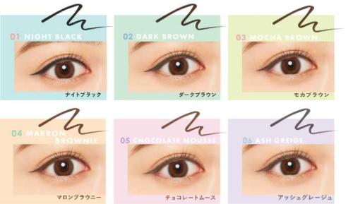 瞳をくっきり見せる01ナイトブラック、柔らかさを添える02ダークブラウン、程よい抜け感の03モカブラウン、自然な華やかさの04マロンブラウニー、肌なじみのよい05チョコレートムース、洒落感を演出する06アッシュグレージュ。シーンや気分に合わせて選べます。