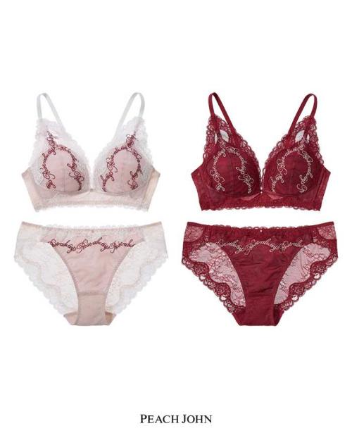 ロマンティックなバラ柄が魅力の「ハートロマンティックレースノンワイヤーブラ」は3,900円、サイズはB~EカップUB65/70/75。ショーツは1,800円でS,M,L、カラーはピンクベージュ、レッドの2色です。