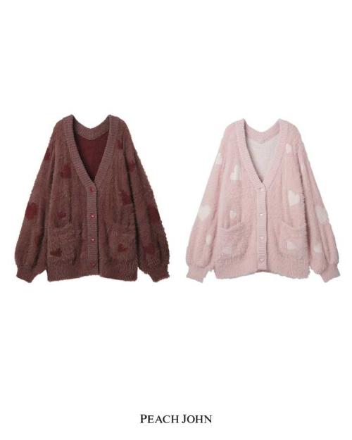 ふわふわ素材の「ホイップリーハートシャギーカーディガン」は5,480円、ワンサイズでブラウン、ピンクを用意。