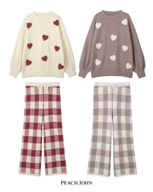 ペアで楽しめる「ホイップリーハートチェックパジャマ」は7,980円、レディースワンサイズ、メンズワンサイズ展開で、レッド、グレージュの2色。