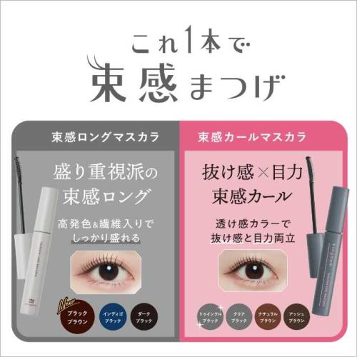 長短ファイバーをミックス配合した束ロング処方で、ダマになりにくく、するんと伸びる仕上がりに。束感用マスカラコームを使った2ステップ設計で、テクニックいらずで美束が完成します。