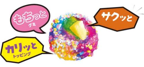 サクッとしたラムネ、もちっとしたグミ、カリッとしたトッピングが合わさり、ひと口で3つの食感を同時に楽しめるのも特長です。