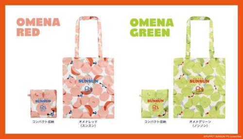 カラーはオメナレッド(スンスン)とオメナグリーン(ノンノン)の2色。A4対応で折りたたみ可能なパッカブル仕様です。