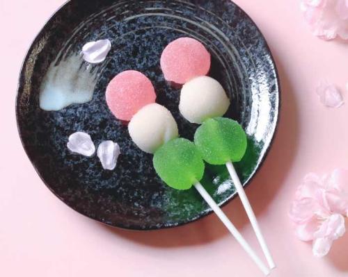 三色団子をイメージしたグミタイプのお菓子。常温保存可能で持ち運びしやすく、お花見にもおすすめです。