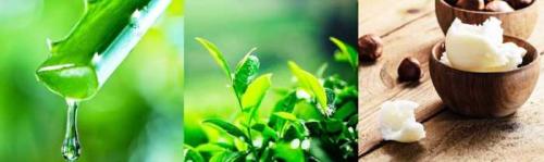 濡らすだけで泡立つ美容ソープには、アロエ7、茶葉8、シアバター*9を配合。シェービング剤なしでもうるおいを守りながら剃ることができます。