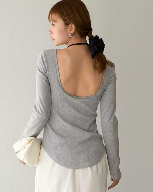 フロントはシンプルながら背中が大胆に開いたデザイン。一枚でヘルシーな印象を演出でき、背中開きトップスのインナー問題を解決してくれるアイテムです。