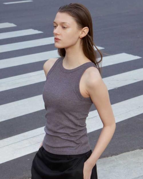 ネックとアームの開きにこだわったアメリカンスリーブ。綿混リブ素材の程よい厚みと太めのパイピングで1枚でも存在感のあるデザインです。