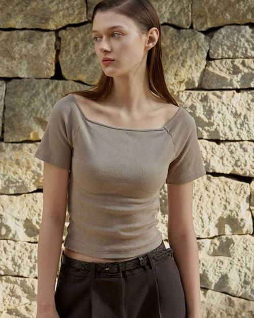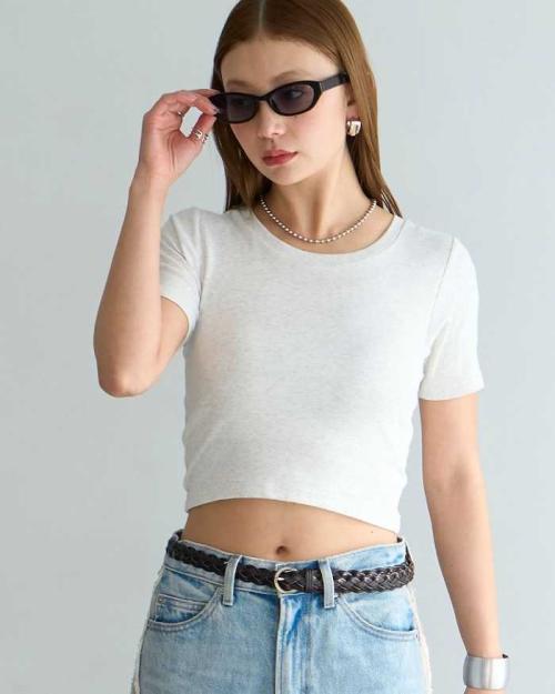 短すぎないクロップド丈で取り入れやすいベーシックTシャツ。スマートな印象を与えながら露出を抑えたバランスの良いデザインです。