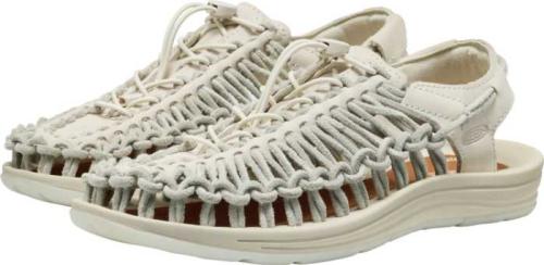 KEENのオリジナル・オープンエアスニーカーUNEEKに使われるレザーコードは、ほどよい凹凸があり、朝もやのようなやわらかなトーンを演出します。
