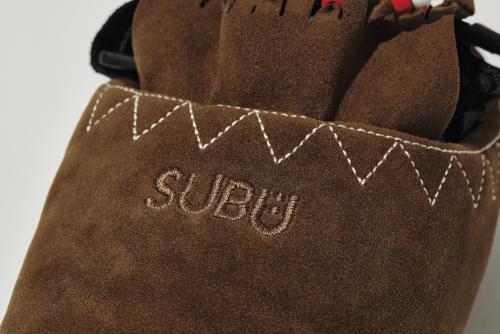 アメリカ先住民たちが履いていた、1 枚の革から作られた“モカシンシューズ”がデザインのモチーフ。それを当時着用していた先住民たちが、現代の技術によって最高の履き心地とクッション性のSUBUを履いたらどう思うか、を想像しながら製作。