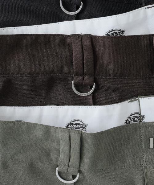 カラーは、ブラック、ブラウン、グレーグリーンの3色展開。また、「ディッキーズ」のパンツに付属しているDカンも採用されています。