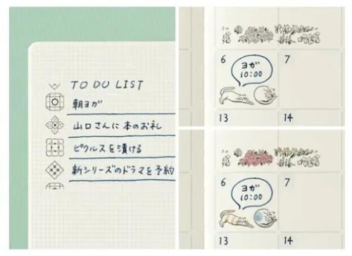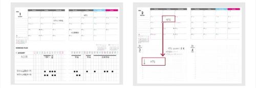 さらに、自由に使えて、文字も図もすっきり書きやすい「方眼罫ノート」もセットになっています。予定管理だけでなく、日々の記録やアイデアメモ、ちょっとした日記など、ライフログのように使えるのも魅力。ページを見返すのが楽しみになりそうですね。