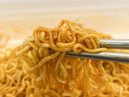 ん~辛い!ちょっと口に入れただけで辛い!でも後からしっかり旨みが来ます。ソースをまとったもちもちシコシコ食感の麺も相性最高で、辛い~と思いつつ、ずるずる食べられてしまいます。