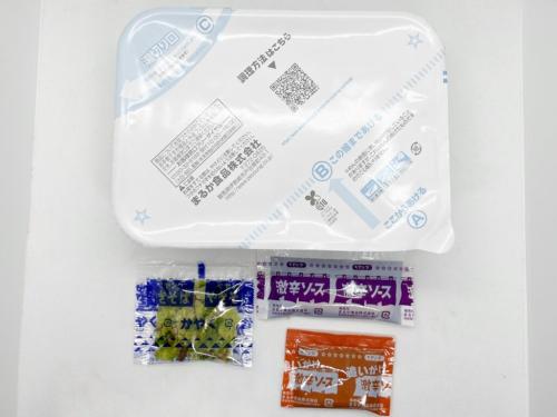 パッケージから取り出しフタを開けると、かやく、激辛ソース、さらに追加用の追いがけ激辛ソースが入っていました。