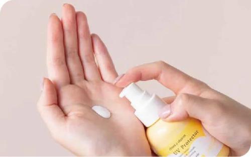 リニューアルした「UVプロテクター」は、紫外線だけでなくブルーライトや近赤外線までカットする高機能タイプ。100%自然由来成分のノンケミカル処方ながら白浮きしにくく、なめらかなミルクが肌に心地よくなじみます。