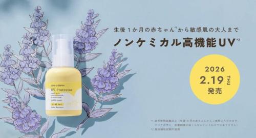 リニューアルした「UVプロテクター」は、紫外線だけでなくブルーライトや近赤外線までカットする高機能タイプ。100%自然由来成分のノンケミカル処方ながら白浮きしにくく、なめらかなミルクが肌に心地よくなじみます。