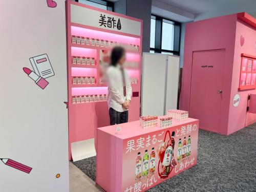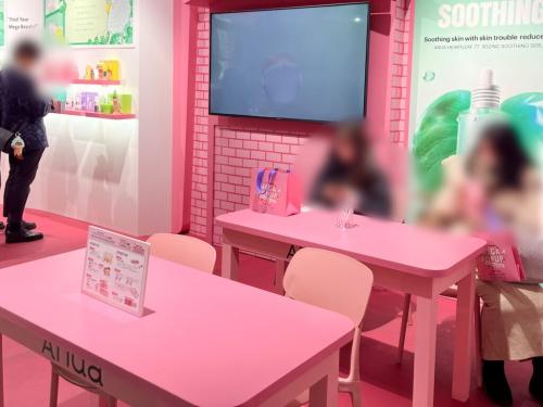 まずは1階のブースから!鮮やかなピンクをベースにしたカラフルな展示がいっぱいなんです。
