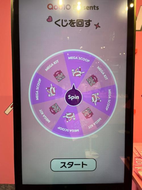 『MEGA SCOOP』は、スタッフさんが10数える間に用意されたスコップでアイテム1回だけすくうことができるゲームです。これがなかなか難しい!私は2つアイテムをゲットすることができました~。