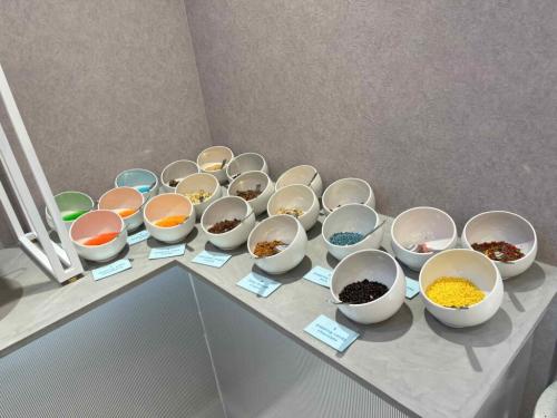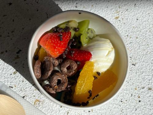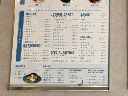 トッピングはフルーツや、グラノーラなどなど。最大で6種類まで選ぶことができます。トッピングによって値段が異なりますが、1種につきの価格なので、トレーの1ブロックに入る量ならたっぷり盛っても同じ値段なのだとか。