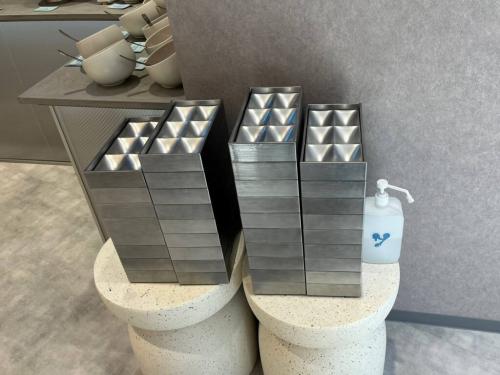 ベースを決めたら、6つに仕切られている銀色のトレーに好きなトッピングを取っていきます。