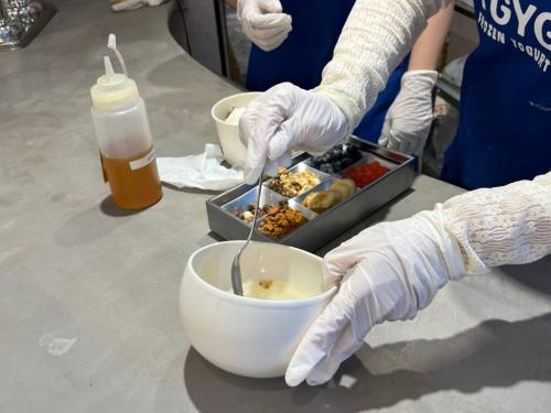 注文の仕方をスタッフさんが案内してくれました。『ヨーグルトアイス』『フローズンアサイーボウル』『生ヨーグルト』の3種からベースを選びます。『生ヨーグルト』はトッピングが固定されているとのこと。