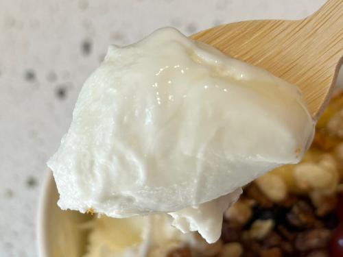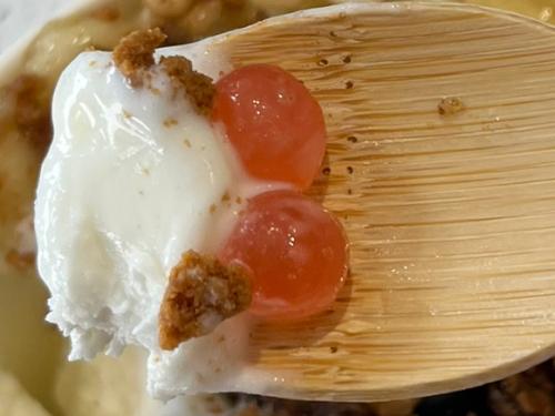 カップの下半分はたっぷりのヨーグルトアイス。甘さは控えめで、とてもさっぱりしたコクが広がります。くちどけなめらかで、これだけで十分美味しい~。