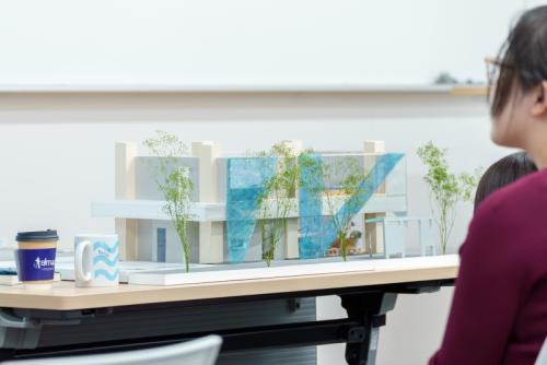 授業には、建築とデザイン、それぞれ異なる専門分野を学ぶ学生が参加し、混成チームを組んで課題に取り組みました。