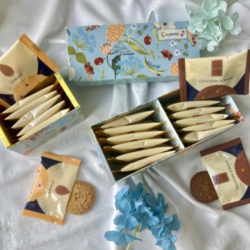 口当たりが良く、噛むたびに広がるまろやかな甘みとサクッと軽やかな食感のバランスが心地よい一品です。フレーバーは、アーモンドとチョコアーモンドの2種類。香ばしさを楽しみたい方にはアーモンド、チョコレートを楽しみたい方にはチョコアーモンドと、好みに合わせて選べるのも嬉しいポイント。