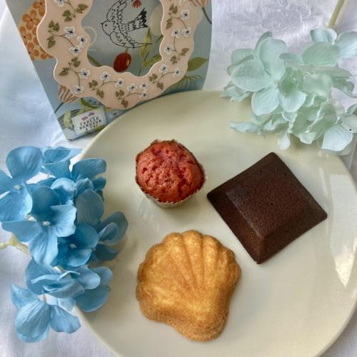 ・3個入(春の焼菓子ミニバッグ):税込 ¥729(本体価格 ¥675)ミニトリュフケーキ(ベリー)、フィナンシェ・ショコラ、マドレーヌ 各1個