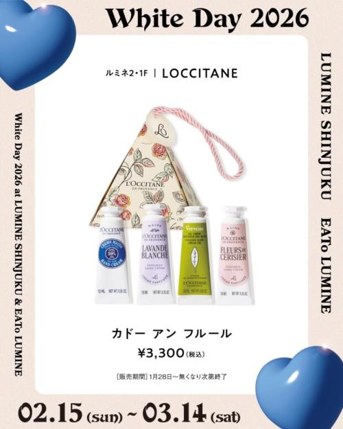 2026年のホワイトデー限定品は、特別ボックスに入った4本のハンドクリーム。春らしい桜の香りをはじめ、心地よい香りを楽しんでもらえる贈り物になるでしょう。